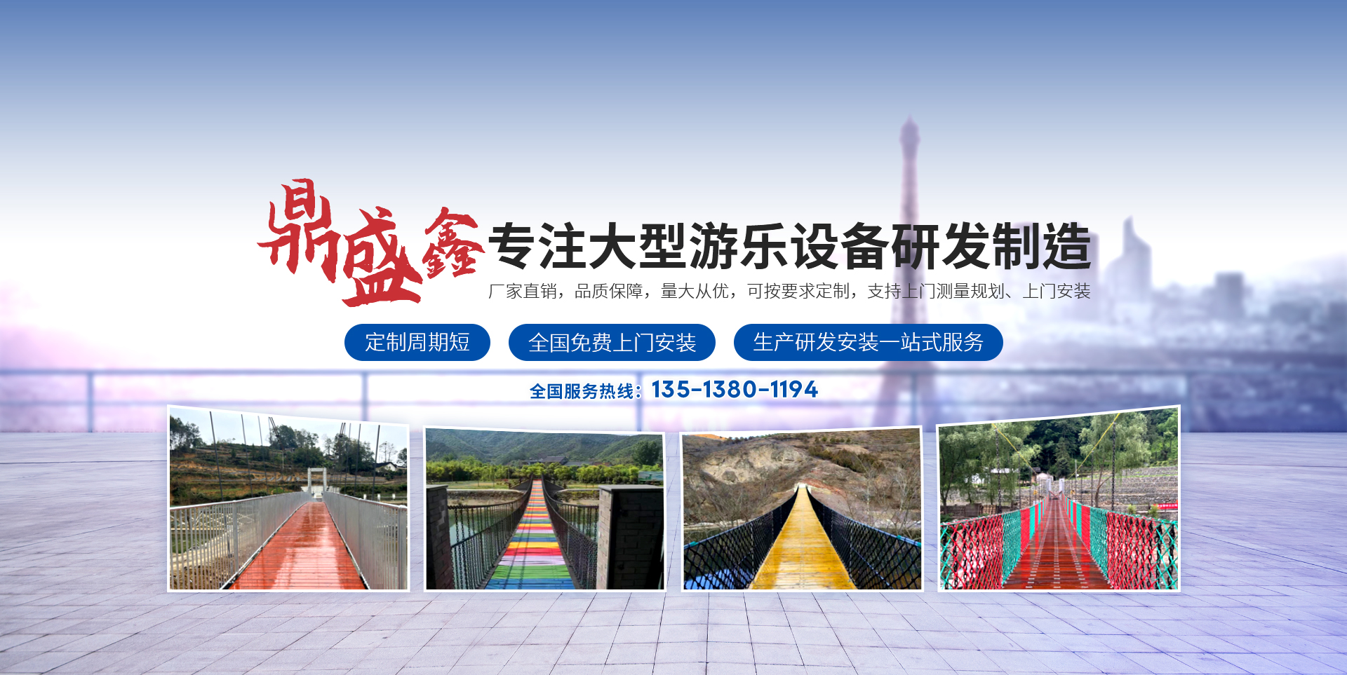 鼎盛鑫游樂設備,是一家集研制、生產、安裝及售后服務于一體的游樂設備企業。我們以創新為動力,專注于為游樂場所提供高品質、安全可靠的滑索、吊橋、滑道、趣橋、拓展訓練設備以及空中自行車等游樂設施。  我們擁有豐富的工程經驗和眾多成功的項目案例。公司匯聚了一支敬業的技術團隊,他們不僅具備深厚的知識,而且擁有豐富的安裝經驗。我們的銷售精英遍布全國各地,能夠為客戶提供迅速、快捷、周到的服務。  鼎盛鑫游樂設備始終堅持現代企業管理制度,建立了精干的管理架構。我們注重團隊精神的培育,倡導“敬業、超越”的企業文化,不斷完善人才激勵與競爭機制。同時,我們建立了科學的施工管理體系,確保每一個項目都能效率、安全地完成。  我們擁有技術人員,為產品的制造、安裝、設計、維修和銷售提供了強有力的支持。我們的技術力量雄厚,售后服務周到,質量保證資質齊全。我們的產品已經在全國各地的公園、景區、度假區、農莊、生活區和游樂場所成功安裝,并受到了廣泛的好評。  選擇鼎盛鑫游樂設備,您不僅選擇了質量有保障的產品,更選擇了我們對您承諾的全方位服務。我們保證,我們的產品能夠通過國家有關部門的驗收,確保正常運行,讓您無后顧之憂。